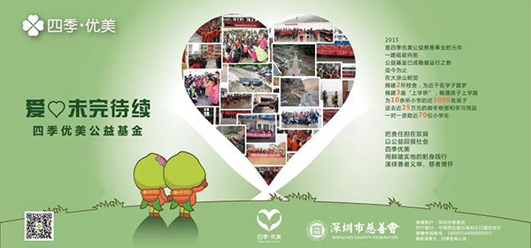 四季優(yōu)美公益基金還將繼續(xù)聚焦貧困地區(qū)的莘莘學(xué)子,堅(jiān)持教育扶貧,傾力助學(xué)助教,踐行擔(dān)當(dāng)、作為、責(zé)任、進(jìn)取的企業(yè)使命。
