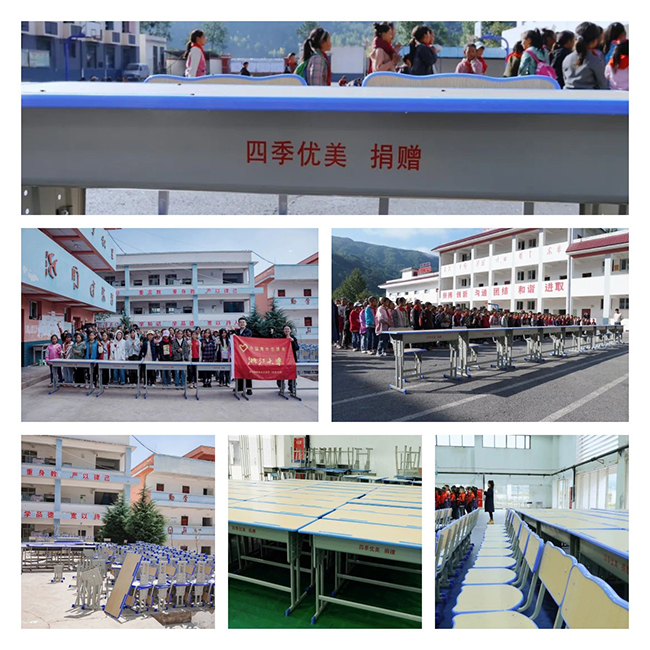 四季優(yōu)美捐贈200套雙人標準化課桌椅到昭覺縣古里鎮(zhèn)中心校、谷曲鎮(zhèn)瓦洛烏小學、縣三小三所學校。