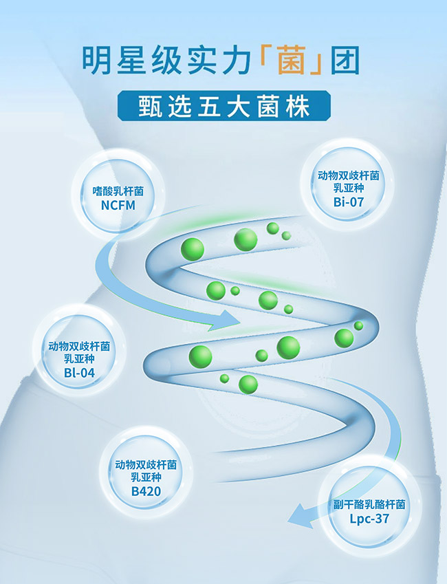 養顧問所選菌株均由美國逾百年歷史、全球公認益生菌標桿企業定制,多項先進科技確保養顧問采用的嗜酸乳桿菌NCFM、乳雙歧桿菌B420、乳雙歧桿菌Bi-07、副干酪乳桿菌Lpc-37、乳雙歧桿菌Bl-04五個菌株的安全和穩定。